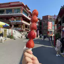 ☝️ Sweet Tanghulu while looking at the gorgeous Chinese-style buildings