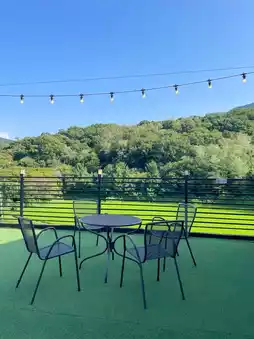 It's a two-story building, with windows on both the first and second floors offering clear views. There's also a terrace, so you can enjoy the rice fields without any inconvenience.