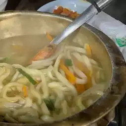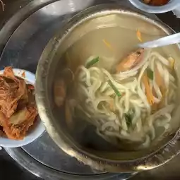 It's fantastic to eat a generous amount of shrimp grilled with seafood kalguksu✨ In addition, they fry the shrimp heads and dip them in seasoning at the end, which is another delicacy🤭