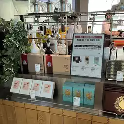 The cafe also sells espresso-based coffee, shakes, aids, and tea. They also have a wide selection of bottled drinks, such as tea with red ginseng.