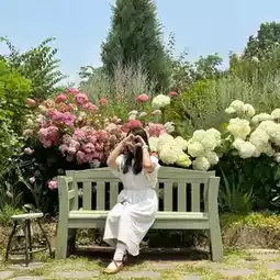 There's a photo zone where you can take pictures with the hydrangeas, and you can also enjoy coffee in the lush outdoor setting 🤍💕