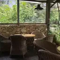 The indoors also have lots of plants, giving it a greenhouse-like feel.🌿