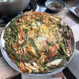 It was so good because it had a lot of seafood inside, like squid, carrots, green onions, and mussels! The flour isn't thick, and since the vegetable and squid area is half, it's not greasy, and it's not too oily, so it's so delicious.