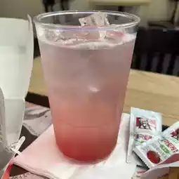 The drink is lychee and chamomile aid. This is quite delicious. It's a sweet carbonated drink, but it's also fruity and refreshing.