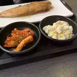This set meal features tender grilled salted mackerel with crispy skin and bibimbap filled with plenty of vegetables and fragrant bulgogi.