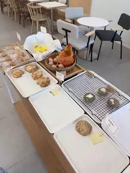 For dessert, they sold cakes, cookies, madeleines, lemon cake, and more.