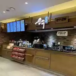 A restaurant in the food court serving kimbap and cold noodles, located near boarding gate 115 on the 3rd floor of the concourse at Incheon International Airport.