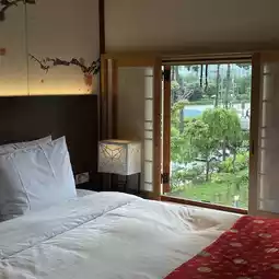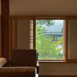 From the exterior to the interior of the guest room, there is a quiet atmosphere, and it is even more beautiful now that I can enjoy the greenery outside the window.