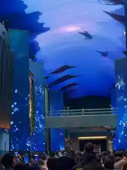 🐳 Free performances are held every 15 minutes. At 15 and 45 minutes, a performance is held in the sacred space called Rotunda. Kinetic art and displays are combined to provide a fantastic sight. At the top and 30 minutes, a spectacular whale media art show is held in the street called Aurora.