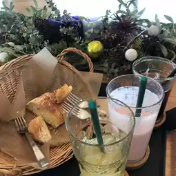 The atmosphere is pretty, and the 2nd floor is well decorated both indoors and outdoors! There are a lot of seats and it's spacious, so it's a good place to go with family or friends!!
