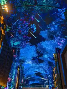 The ceiling and walls are LEDs that change the image from a green forest.