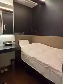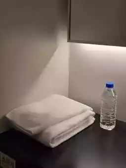 Even though the room only had a bed, table, water, and a bath towel, you could use the shared shower outside the room for free!