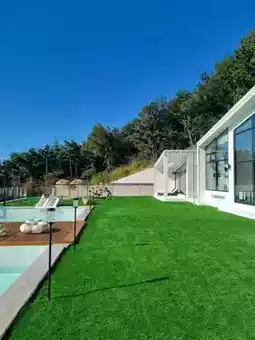 A kids pension with a private swimming pool and a large lawn, making it a perfect place to visit with children. There is also a space for playing in the sand right next to the swimming pool. The children's laughter never stopped during our stay. Enjoy a fun trip with exciting water play time in the hot summer.