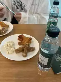 There were fruits, cereals, Korean, Western, and Chinese dishes, all in small portions. Since people from various countries use it, it seems they prepared a bit of everything. I enjoyed the buffalo wings and tteokbokki. Overall, the seasoning was on the stronger side!