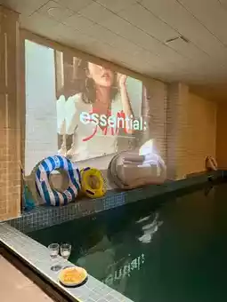 You can even turn on the beam projector and swim while listening to your favorite songs🩵