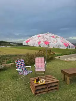 Here is a place where you can have a pleasant coffee time while looking at the quiet and peaceful rice field view