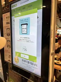 There is a Korean restaurant in the food court, and we ordered bibimbap, seafood jjigae, and hiyashi noodles. We selected our order on the touch panel at the entrance, paid, and a receipt came out. When the receipt number was displayed, we went to pick it up ourselves.