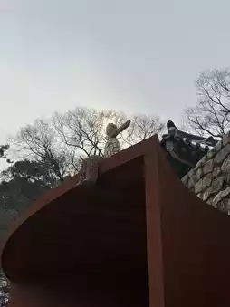 There are parking lots at the East Gate and South Gate, and if you go up, you will see a temple teahouse.