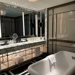 In the bathroom, you could sit in the bathtub and watch TV in the mirror.