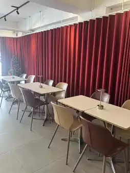 The interior has red curtains that can be seen from the stage, so it feels like you're behind the stage or on the stage.