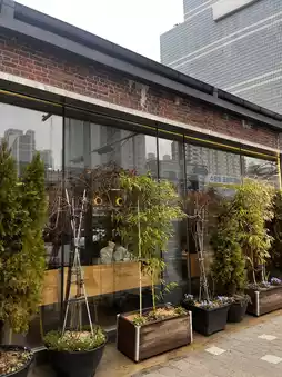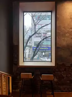 The cafe's interior is spacious and pleasant, making it a great place for conversations with friends or reading a book alone. The large windows let in plenty of natural light, enhancing the ambiance. The wood-themed decor and green plants create an even cozier atmosphere. If you're looking for a cafe with a great vibe in Dongincheon, I recommend this place.