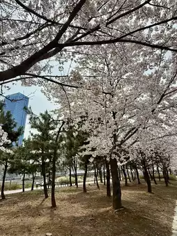 Located in Songdo, Central Park serves as a peaceful retreat in the city. In spring, cherry blossoms bloom throughout the park, creating a stunning view. The cherry blossom trees planted along the waterway are especially beautiful, with their reflections in the water attracting many visitors.