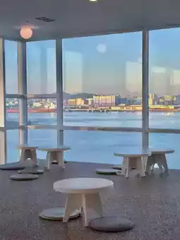 The ocean view from the large cafe that uses the entire top of the 10-story building is really nice. The walls are all made of large windows, so it feels spacious! There are also low tables, so it's comfortable, and you can take great pictures no matter where you take them. Enjoy coffee and dessert with a great view👍