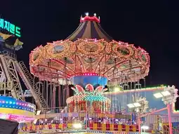 Wolmi Theme Park is a landmark of Wolmido in Incheon, offering a variety of attractions along the seaside walking path. Visitors can enjoy amusement rides, musical fountains, character sculptures, and street performances. The park's most famous ride is the Disco Pang Pang, a unique attraction where a lively DJ commentary accompanies the bouncing and spinning movements, making it a must-try experience. Additionally, classic rides like the Viking ship, carousel swings, and Ferris wheel are available, ensuring fun for both children and adults.