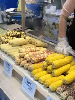 Corn: A snack that is easy to enjoy, sold throughout the market.