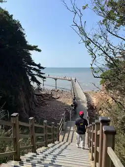 is a movie-like path where the sea, forest, cliff, and wooden deck come together.