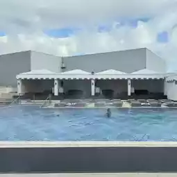 The spacious main spa features lukewarm water, making it perfect for playing in the water. There's also a separate water massage area where you can sit and enjoy a refreshing experience.