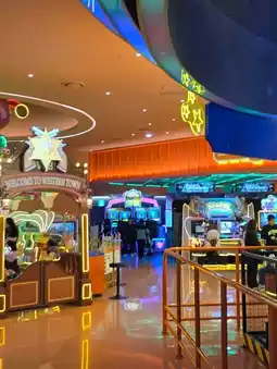 Located within the Inspire Resort, the Jjang Land Arcade immediately stands out with its unique entrance. The desert-themed entryway, complemented by an earthy-toned floor, grabs your attention right away. It feels like stepping into a themed park zone, exciting kids from the very start. Once inside, you'll find a wide array of arcade machines, ranging from classic games to the latest rhythm games.