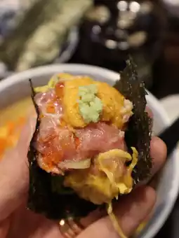 Sijo's signature dish at the Lotte Department Store Incheon branch, the J-Takudon, is a seafood rice bowl featuring salmon roe, tuna loin, tuna belly, white fish, whelk, clams, shrimp, cucumber, and green onions, topped with sea urchin and crab meat for an extra touch of flavor. The variety of seafood piled high above the bowl is truly impressive!