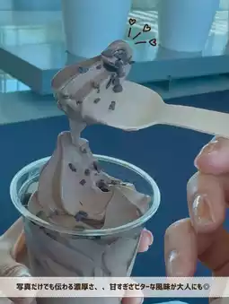 The bitter and rich chocolate soft serve is absolutely delicious, not overly sweet, making it a perfect treat for adults. Pairing it with churros, which are crispy and go perfectly together, is a must-try 💯