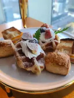 The desserts are consistently sweet in flavor, while the savory items include ham and cheese sandwiches, croffles, and soufflés, showcasing the restaurant's unique offerings.