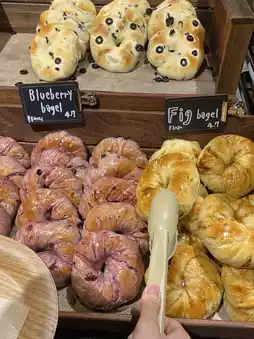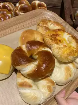 In addition to the most popular potato bagel, I also bought a basic bagel, garlic, onion, and honey cheese bagel☺️
