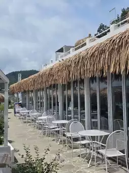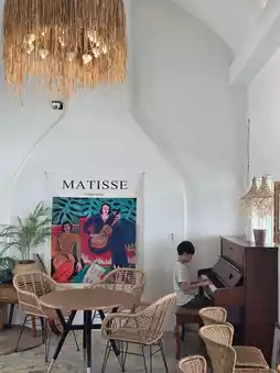 The cafe's interior is decorated with stylish props and warm lighting, creating a perfect atmosphere for taking photos. The coffee, craft teas, ades, and desserts are diverse and delicious, and pairing them with the ocean view is a truly healing experience.