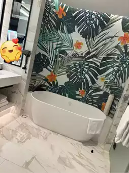The room had two sinks, a separate shower and toilet, and was very clean.