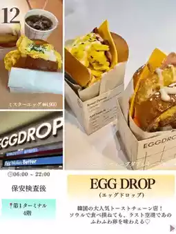 12. EGG DROP... Korea's hugely popular toast chain! Even if you missed it in Seoul, you can still enjoy their fluffy eggs at the airport!