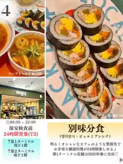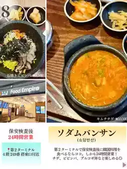 8. Sodambansan (소담반산)... If you're looking for Korean food after security in Terminal 2, this is the place to go. Open 24 hours! Enjoy dishes like jjigae, bibimbap, and bulgogi rice bowls!