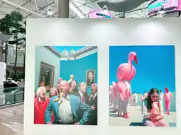 Although the airport is bustling, the exhibition aims to provide a moment of reflection for travelers. As intended, people pause to take photos in front of the artworks, drawing closer to the paintings and engaging in interpretation.