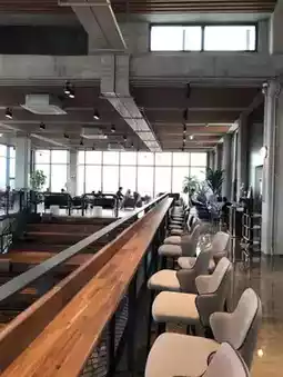 and the terrace seating facing the ocean,