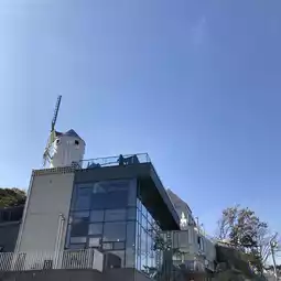 There are parking lots, restaurants, and cafes inside the village,
