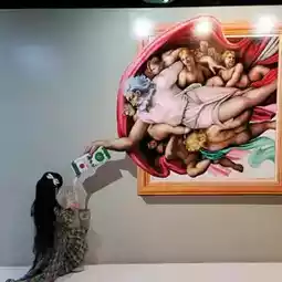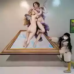 Take a realistic picture in front of the fun trick art.