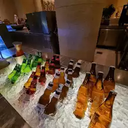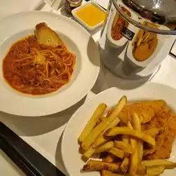You can bring your kids during happy hour, so I fed them a lot of kimbap and chicken and sent them up, and finished off with spaghetti and French fries from room service for dessert.