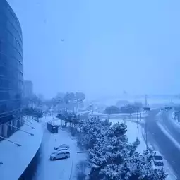 The next day, it started to snow, so the snowy scenery was beautiful. The airplanes were flying right above, and I was excited.
