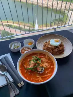 The ocean view is right in front, which is so nice, and eating jjambbong and kimchi fried rice while looking at the ocean is so delicious❤️