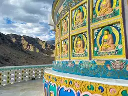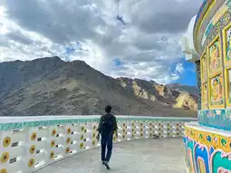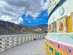 This stupa is very close to the city, just a short trip away. From here, you can see the entire city of Leh. Many people stop by to take photos of the city view. You can walk around the stupa, which is surrounded by mountains, making it incredibly beautiful. Visiting in the evening to watch the sunset from the top of the stupa offers an even more stunning view.