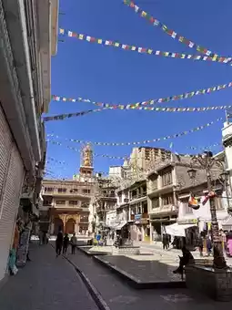Leh is such a charming little city—wandering through its old streets feels like stepping back in time. The whitewashed buildings with their colorful windows look amazing against the mountain backdrop. Even in April, it was seriously cold, especially at night. Most guesthouses don’t have heating, but the owners are really sweet about piling on extra blankets to keep you warm.