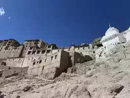 Walk downhill to the Old Castle ruins. The short hike up from Royal Palace (about 20 minutes) is worth it for the ancient Buddhist prayer flags, crumbling walls, and another fantastic view of Leh (the best viewpoint in Leh).